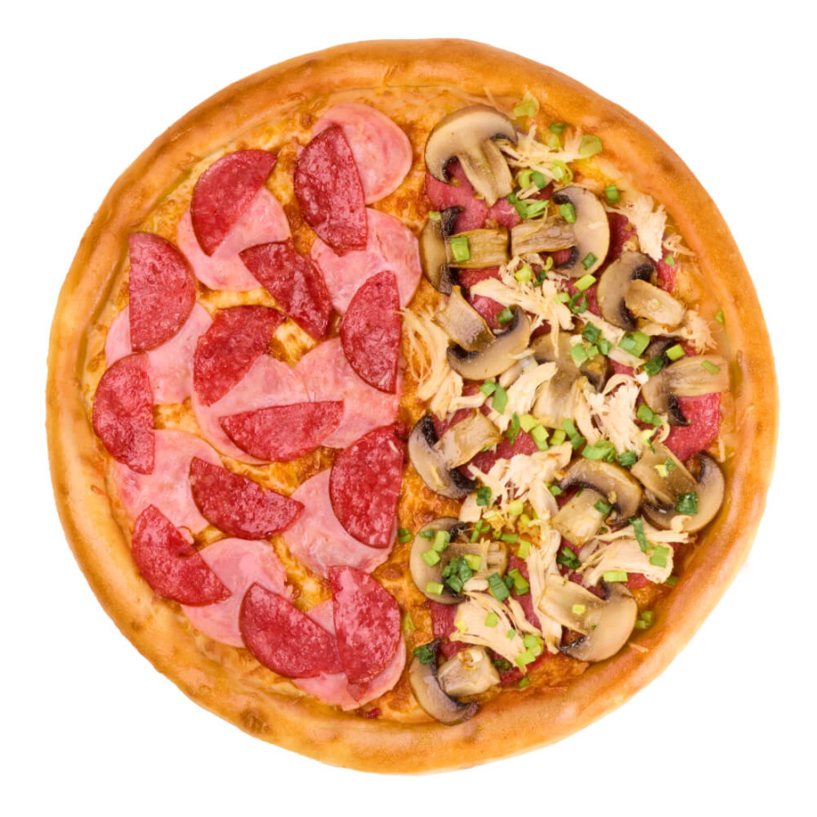 Любимые половинки в одной пицце - 1/2 пицца Детская +1/2 пицца Ассорти
